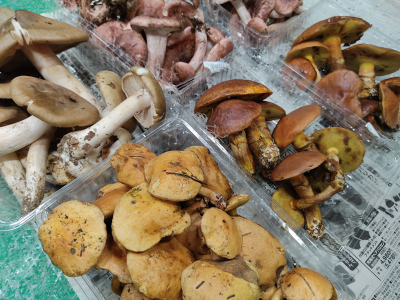 天然きのこを仕入れ 秋の味覚 天然きのこを仕入れました。 9月下旬から暑さも収まり きのこの生長に適した気候になってきたことで、最近になり野菜産直所に天然きのこが並ぶ様になってきました 当店では、さっと茹でた天然きのこに 大根おろしをかけた「天然きのこおろし」としてお出ししております 産地でしか味わえない天然の美味しさです。